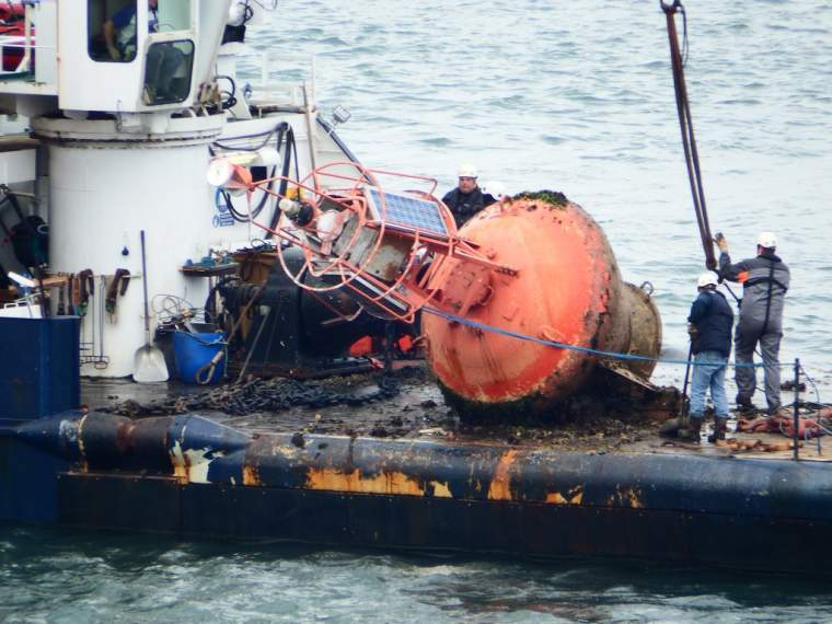 French buoy tender Hauts de France attending to a buoy in Dunkerque West. The new LNG terminal nearing completion can be seen in the background.
