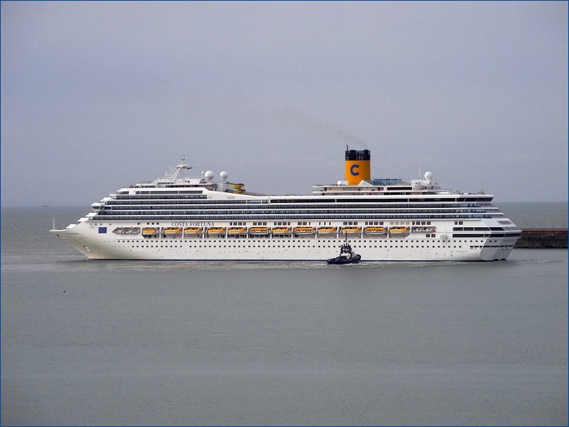 And now some images of the fabulous Costa Fortuna arriving with us yesterday. It is great to have see such striking ships here in Dover. Our fascinating story goes on. The conditions were good as you can see on arrival, but of course its all gone downhill since then...weatherwise. She left last night in gloomier atmospherics for Amsterdam.