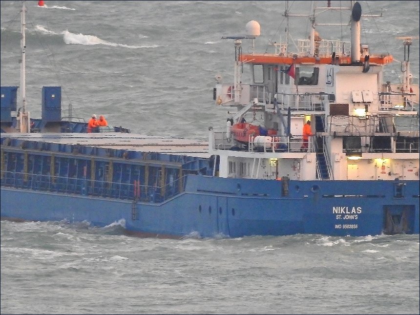 A sequence now of grain ship Niklas departing on Friday evening...time of first shot 16.46 (or 4.46PM if you prefer). You can see her below in the first picture moving away from the dock and then slowly, with the pilot alongside, making her way out of Port. A very well maintained ship as you can see...looks good...