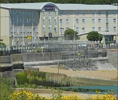 You can see some of the sea wall scaffolding from a distance here..and below a crop of the picture above.